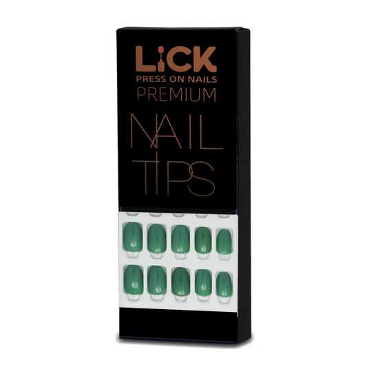 LICK NAILS Emerald Green With 3 Glitters Press on Nails