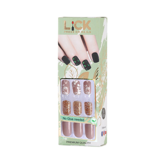 LICK NAILS Emerald Green With Floral Design Press on Nails