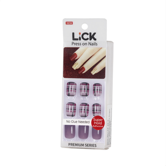 LICK NAILS Griege with check print Shade Press on Nails