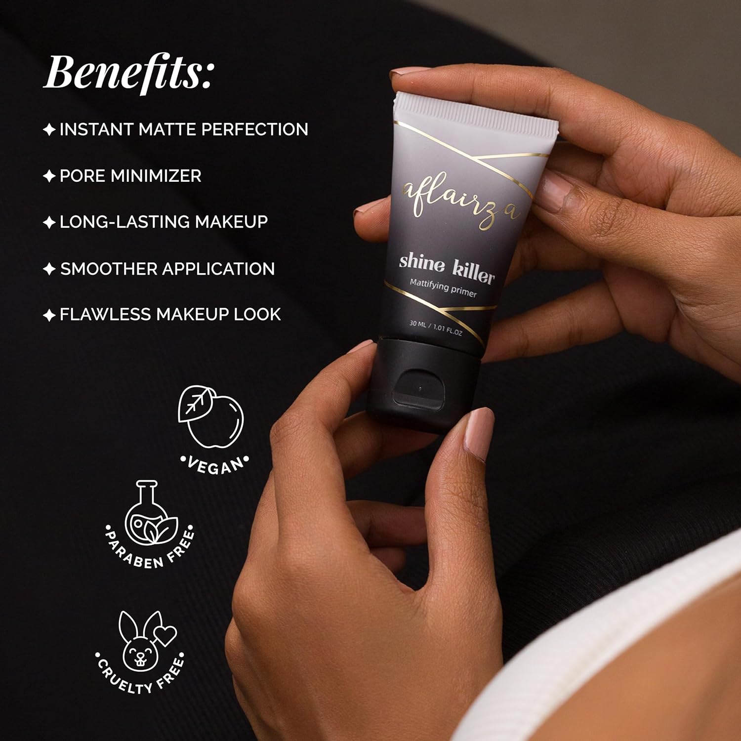 Aflairza Shine Killer Mattifying Primer with Charcoal & Bamboo, Pore Minimizer, & Long-Lasting Face Makeup Base for Oily Skin Flawless, Shine-Free Finish All Day 30ml