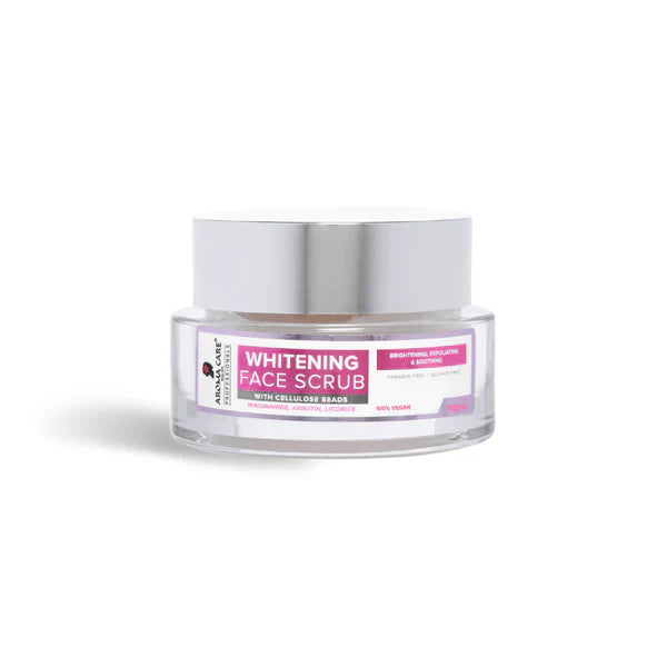 GoodNess Inside : Enriched with the goodness of skin brightening actives like Niacinamide, Arbutin & Licorice - this gentle exfoliator is exactly what you need to get the perfect complexion. Formulated with Cellulose beads, this brightening scrub offers seamless buffing away of dead skin cells, dirt, grime, and other impurities. It gets rid of clogged pores and black heads, even out the complexion, also improves skin's elasticity & whitens the skin with regular application.