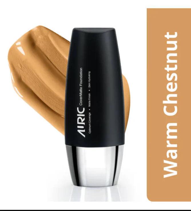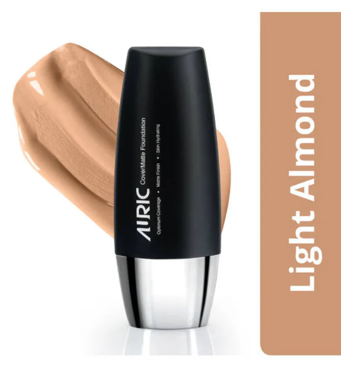 Auric CoverMatte Foundation is Liquid foundation with optimum coverage and matte finish. Gives High coverage with smooth matte finish. Contains rice powder and shine control effect. Vitamin E & UVA/UVB filter for Anti Aging protection. Enriched with hyaluronic acid to give deep hydration to keep skin moisturized. 100% Veg, Paraben Free.