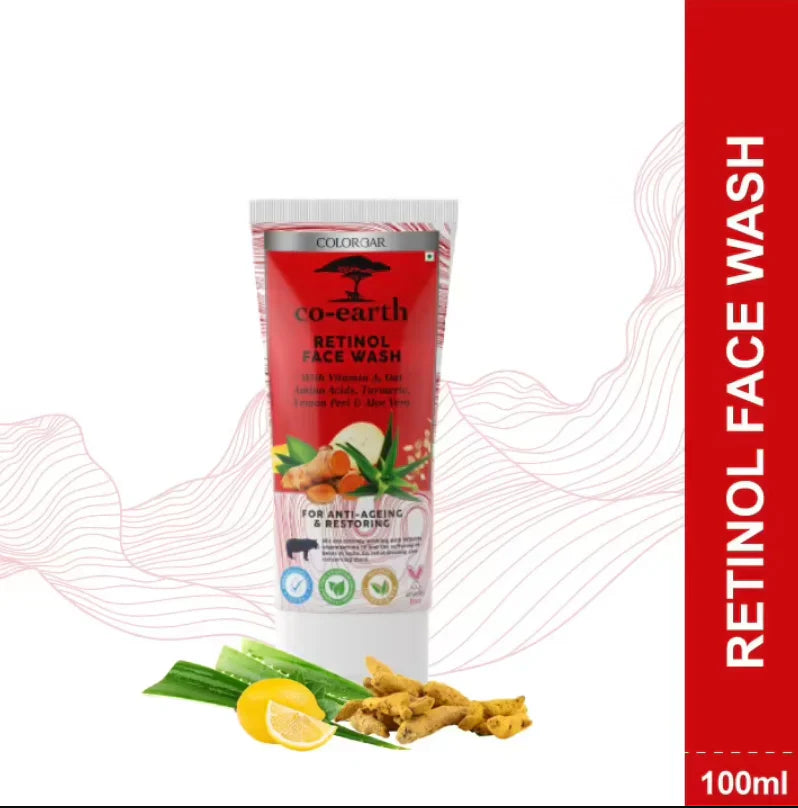Colorbar Co-earth Retinol Face Wash - a gentle and effectively deep cleansing face wash, enriched with the goodness of vitamin a derivative, retinol, lemon peel extract and oat amino acids that together helps to fight signs of ageing and free radicals. A non-drying formula that leaves the skin hydrated and soft after every wash. Turmeric extract further helps to boost healing, eliminate toxins and prevents early signs of ageing. Oat amino acids are naturally rich in vitamins and lipids that helps the skin retain its natural moisture balance. Use in the morning and before bedtime for younger looking clearer skin.