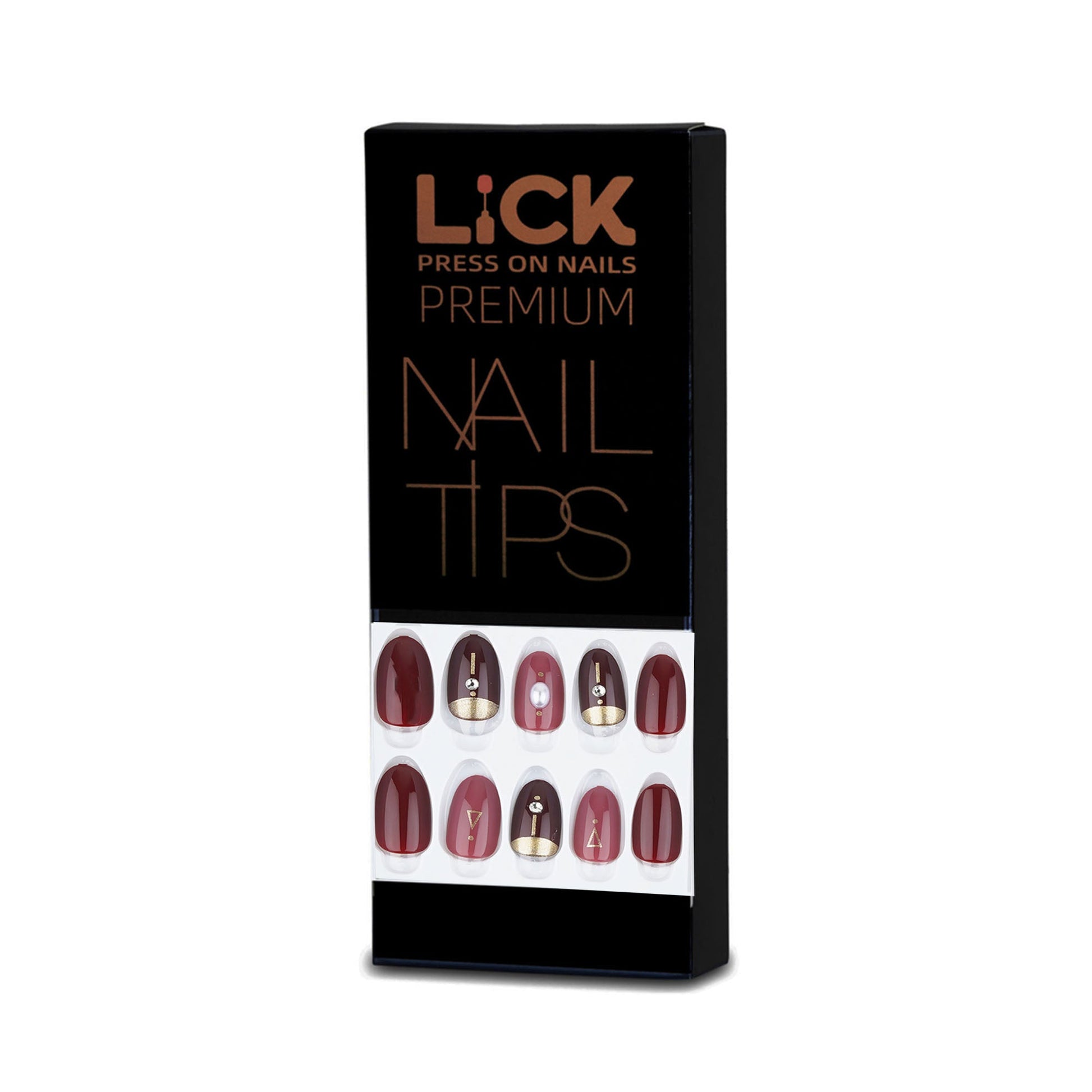 Lick Nail Glossy Finish Dark Burgundy Shade Oval Shape Press On Nails Pack Of 30 Pcs