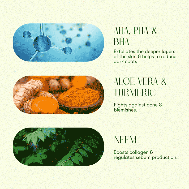Hersay Acne Expert Face wash formulated with combination of AHA, PHA & BHA that exfoliates the deeper layers of the skin, and it does wonders for acne-prone skin. It also helps to reduce dark spots and dullness. Enriched with Neem, Turmeric, Aloe Vera & skin conditioning vitamin that helps to fight against acne, blemishes & regulates the sebum production. It softens the top layer of the skin and gently dissolves the dead skin cells, clearing it of pore-clogging debris, impurities and reveal a fresh and healthy skin. Suitable for all skin types.
