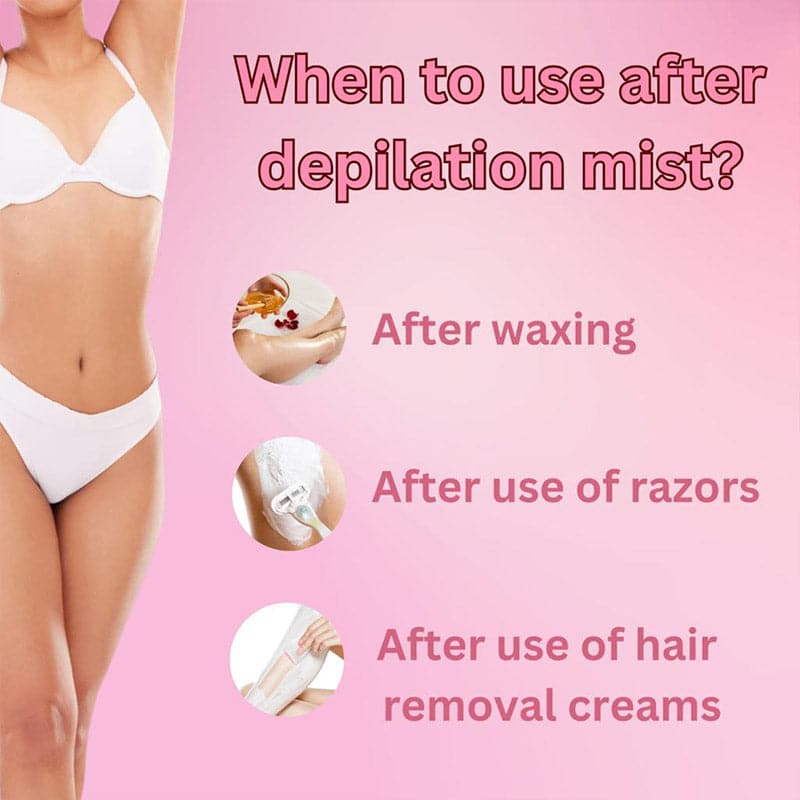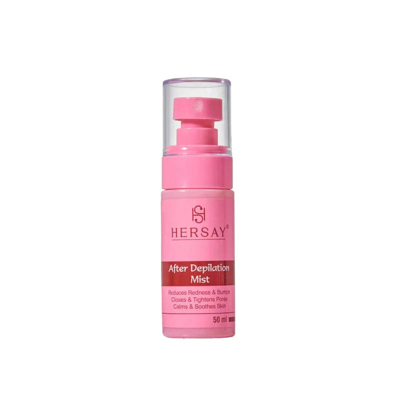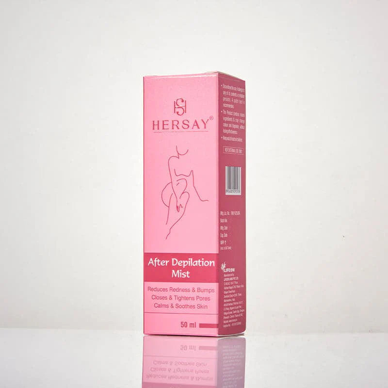Hersay After Depilation Mist is specially designed for women’s sensitive skin. Enriched with goodness of natural extracts and oils that helps to calm, sooth, moisturise the skin and making it soft, smooth & supple. It helps to reduce redness, inflammation, ingrown and razor bumps. It’s a perfect product for both, pre and post-shave. It is safe to apply on legs, bikini lines, underarms, face, neck, stomach and hands.