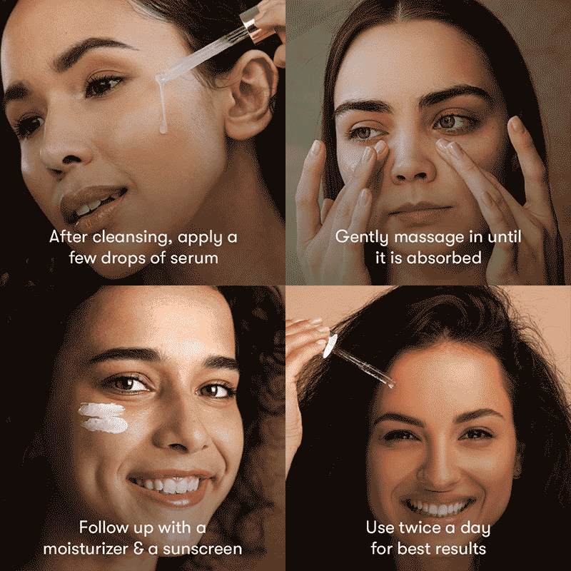 This serum is multi-action dark spot corrector with 5 effective & safe skin lightening agents like Alpha Arbutin, Kojic Acid, N-Butyl Resorcinol, Niacinamide & Liquorice Extract. With 3 powerful anti-oxidant Like Vitamin C, Vitamin E & Ferulic Acid. To sooth & moisturize the inflamed skin this serum contains Sodium Hyluronate, Allantoin & Aloe Vera.
