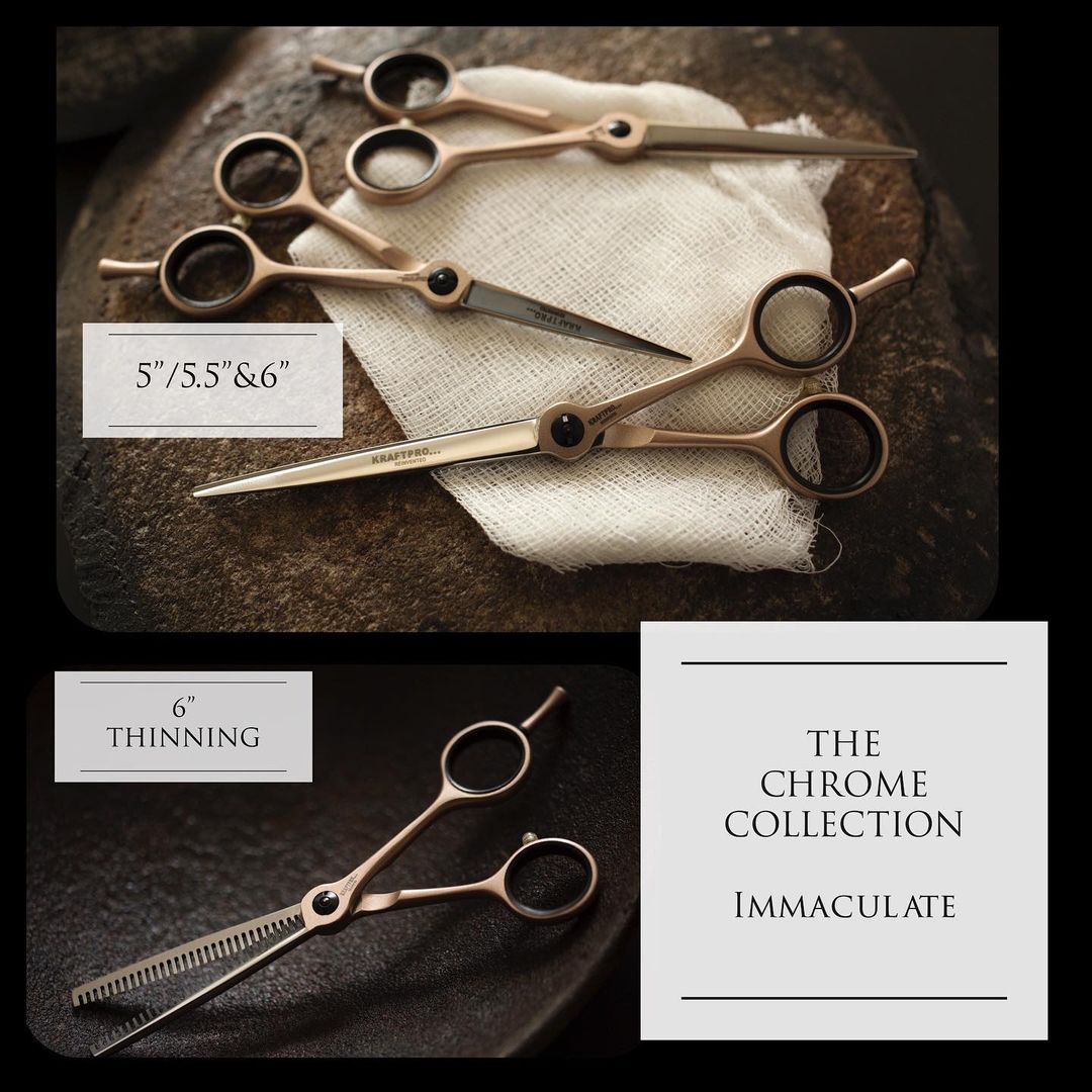 With its metallic coating the Chrome is almost a surreal work of art. Conceptualised and forged in pure Japanese steel, this premium offering is a steal from the word go. The addition of a thinning version makes it a complete package for any professional.
