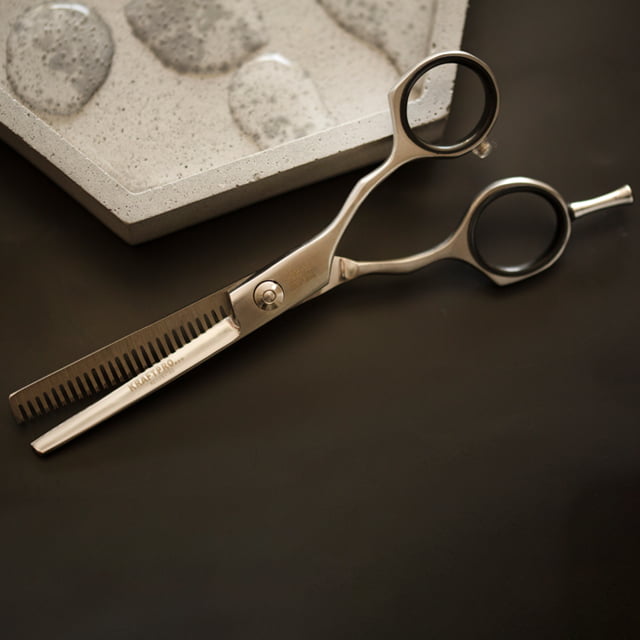 Designed to look like a gothic instrument the F8 is the sum of old school looks and advanced ergonomics. A carved and embossed metallic exterior belies the lasting sharpness that makes this scissor a professional’s choicest pick.