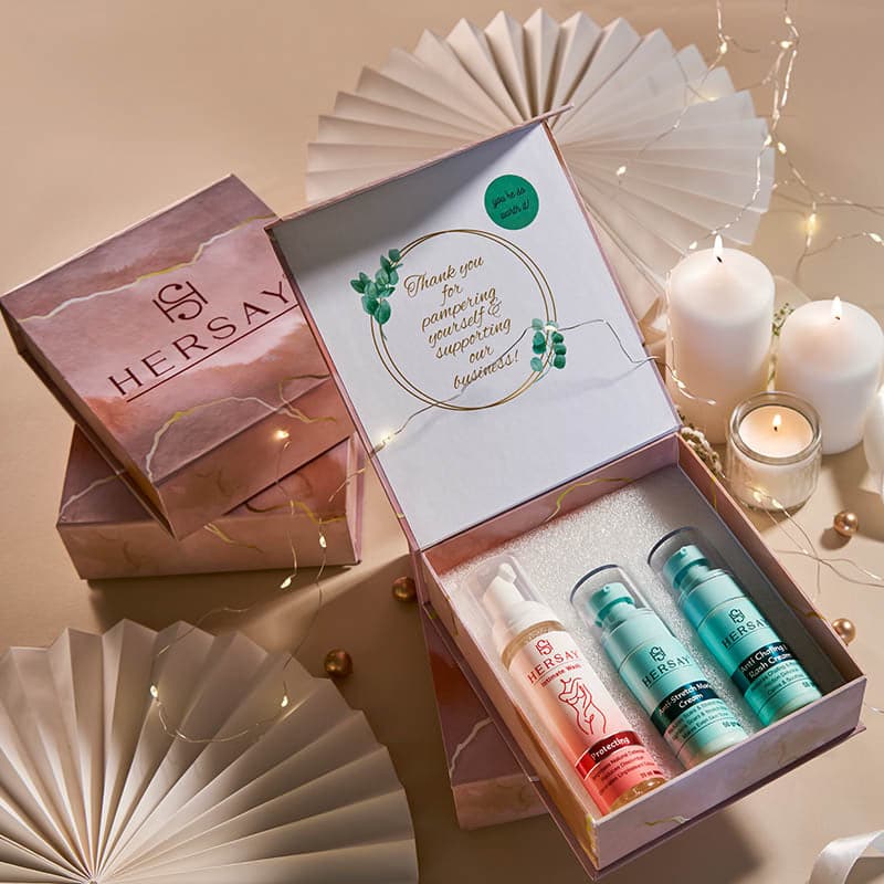 It's time to pamper the new moms with utmost love & care. Hersay Moms Care Gift Hamper is wrapped with all the essential products a new mom would need. Products that are toxins free, and safe for your skin. The gift hamper includes a Hersay Anti-Stretch Mark Cream, Hersay Anti Chafing & Rash Cream and a Hersay Intimate Wash - Protecting. Comes along with a pretty box, which makes it even perfect for gifting.