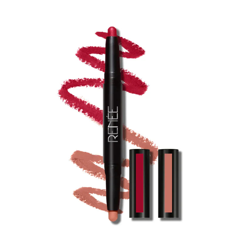 The RENÉE 2 in 1 non transfer liptstick Crayon brings in the element of monochrome with a lighter and darker shade of the same color on the two ends of one stick while adding the drama of five essential core colors - Red, Pink, Purple, Orange, and Brown. The monodramatic crayon is nothing near ordinary with its non-transfer, special, and innovative formula for a pleasant and soothing sensation with an intense, long-lasting color payoff. The full coverage of a silky smooth matte finish leaves your lips super soft and sexy, with different stunning looks day and night. Pick your desired nuance of the shade and delight yourself with light or bright lips of your choice! Choose an end of the crayon based on your mood, outfit, or occasion, and paint your lips spot on to look as pretty as a picture!