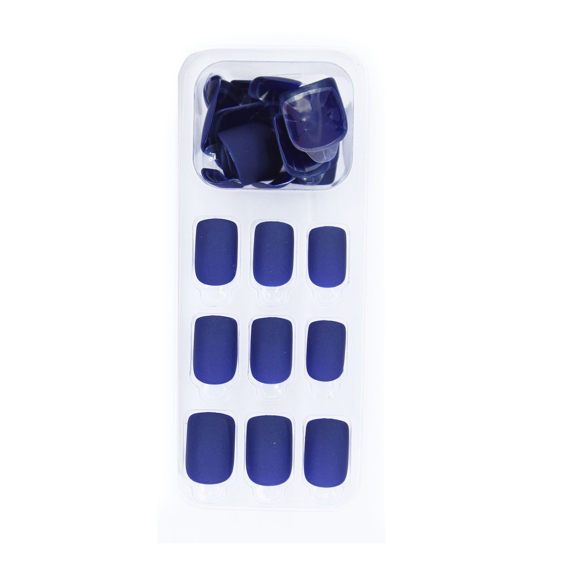 Blue gives us a peaceful and cool vibe. Add a touch of decadence to your hands with these 24 Pcs matte navy blue square designer nails. The Navy blue shade is an exquisite hue for any season, and the matte effect adds a dimension and depth.