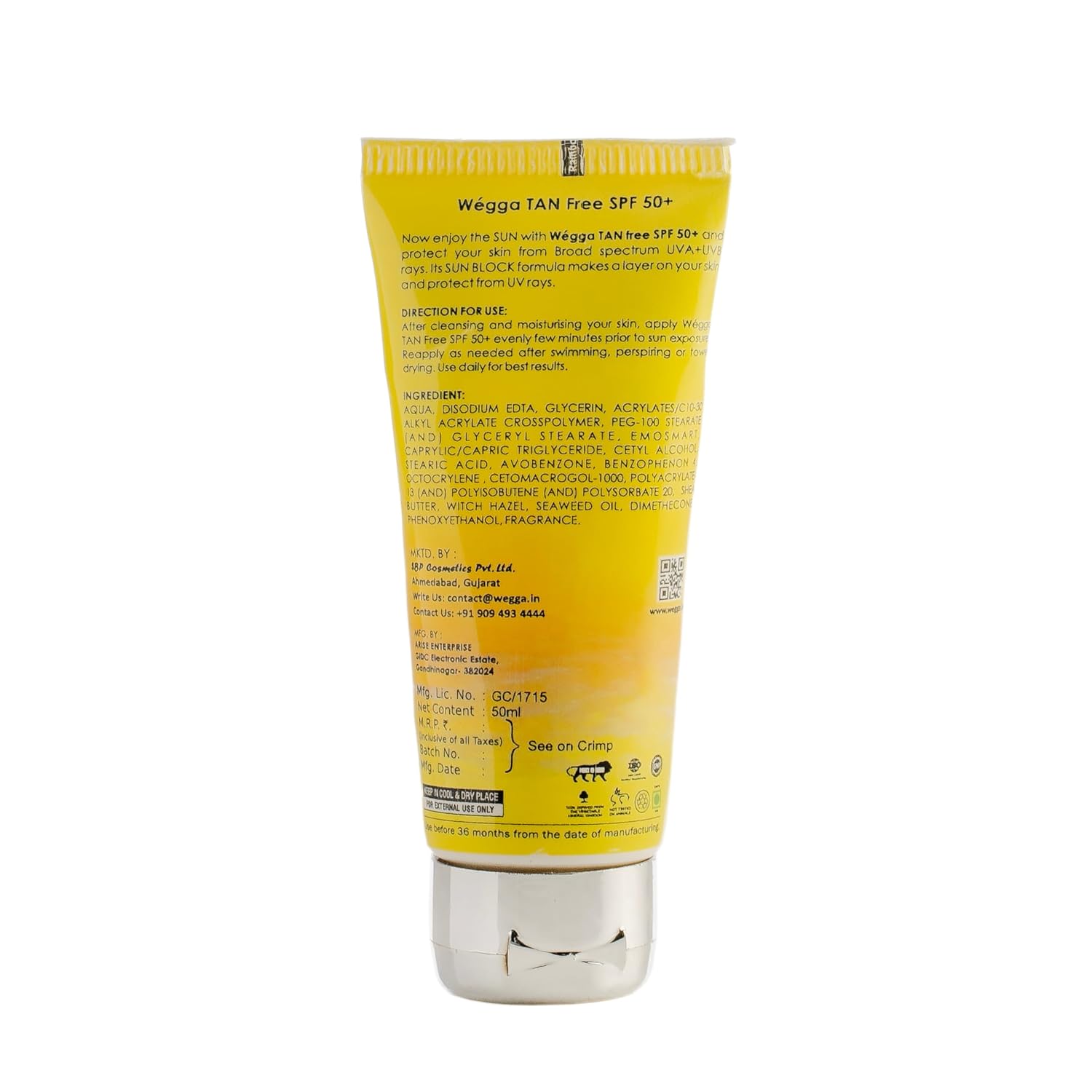 After cleansing and moisturising your skin, apply Wégga TAN Free SPF 50+ evenly few minutes prior to sun exposure. Reapply as needed after swimming, perspiring or towel drying. Use daily for best results. Quantity: 50 ml || Item Form: Cream For the best results, use the product on an everyday basis Target Audience Keywords: Unisex Adult For external use only. Avoid contact withFor external use only. Avoid contact with eyes. If contact occurs, rinse eyes thoroughly with water.eyes. If contact occurs, rinse eyes thoroughly with water.