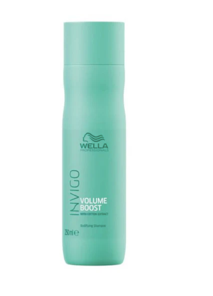Wella Professionals Invigo Volume Boost Bodifying Shampoo with Volume Boost-Blend is a lightweight formula that gives manageability and shine without weighing down even fine hair. It effectively removes styling product residue from the hair and giving a fresh and clean feel to the scalp and hair. Bodifying spring force polymers surround the hair fibers, stabilising them and help to create the most voluminous looks during blow-drying (Spring Force Blend). Cotton extract adds stability and perfect softness without weighing the hair down, leaving it perfectly smooth and soft to the touch.